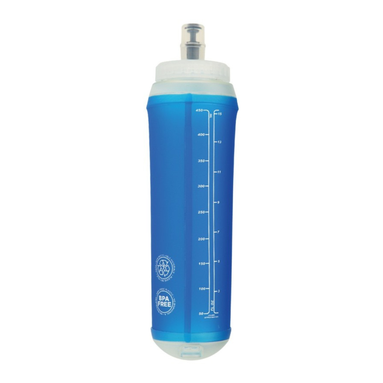 Botella fabricada en TPU de diseño ventajoso de tamaño en 500ml, con cierre a rosca y boquilla con tapa, ideal para deportistas, disponible en color azul. BPA Free.