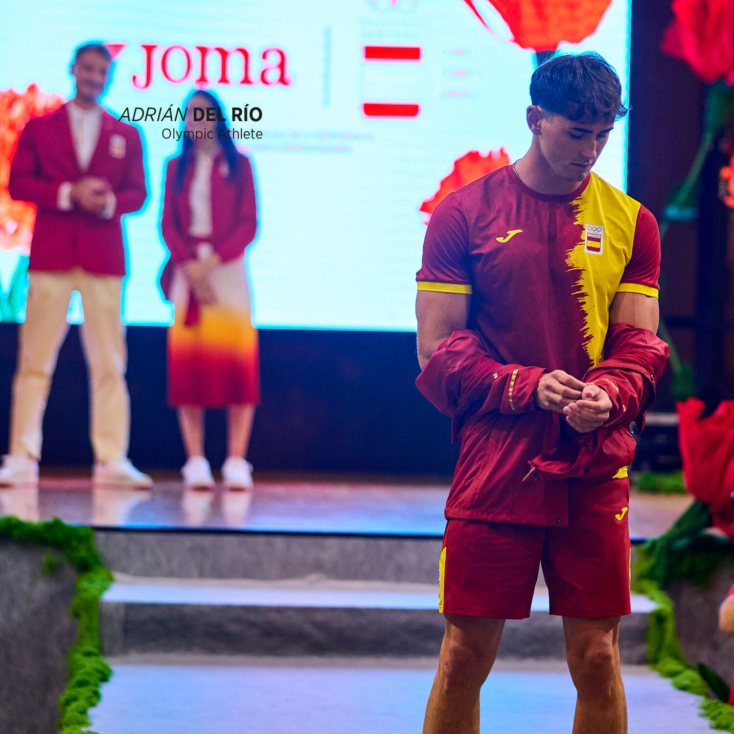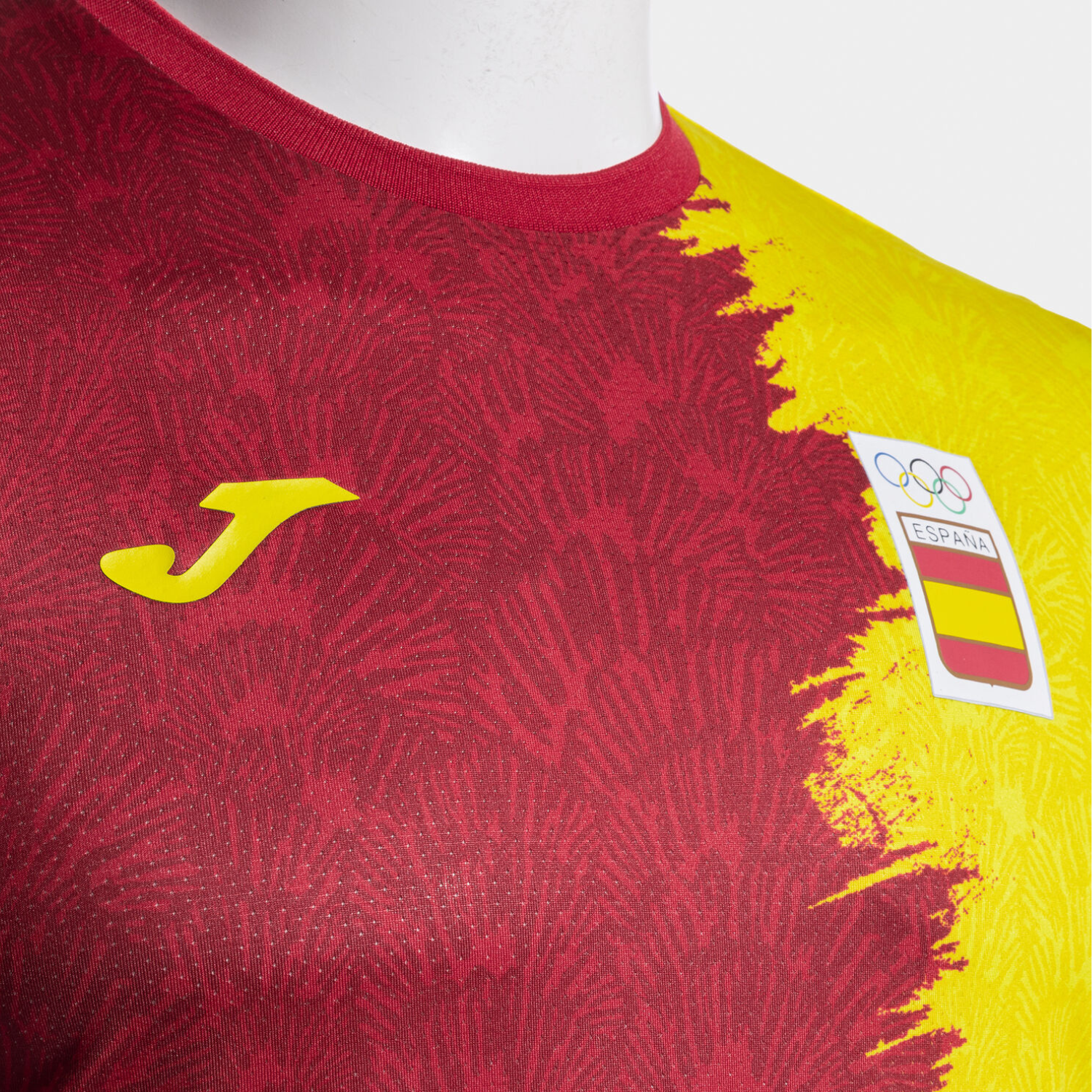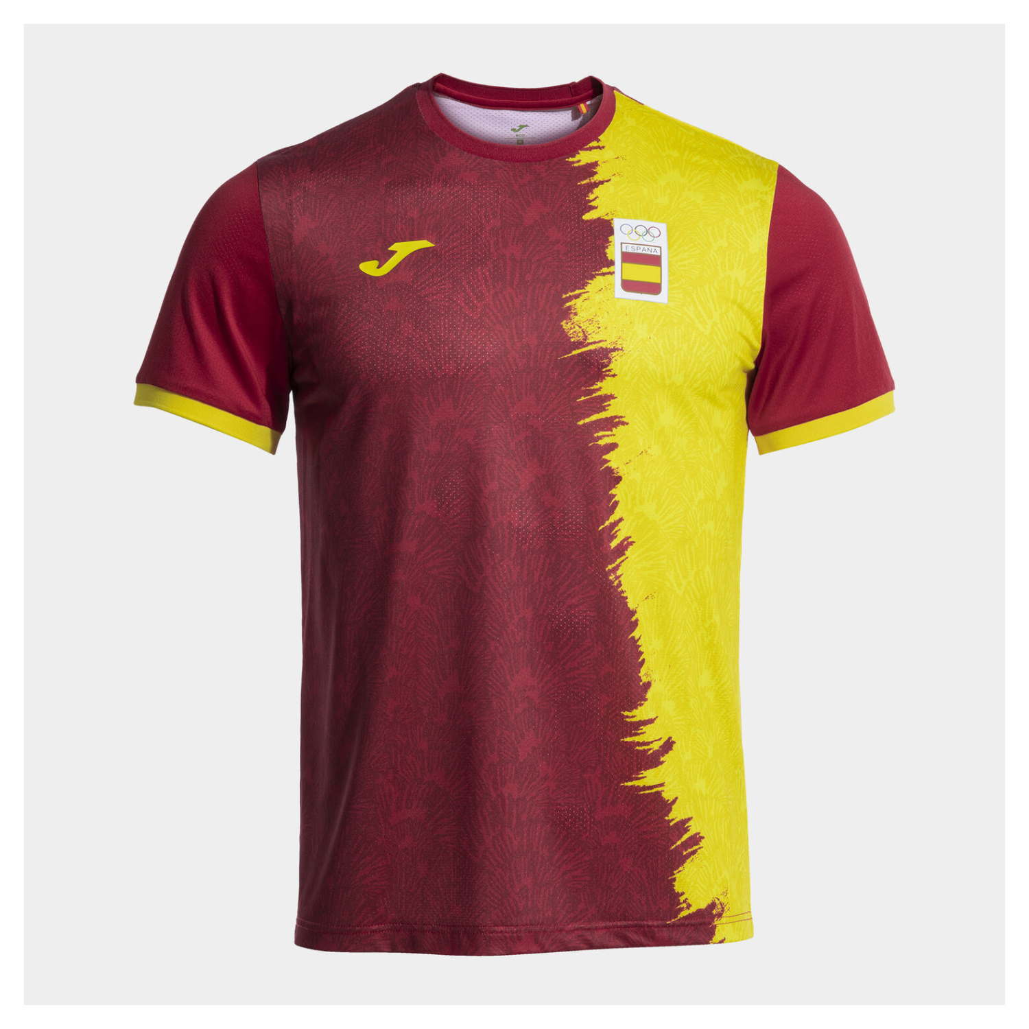 Camiseta de manga corta de hombre. Siéntete como uno de los atletas españoles cuando estén en Villa Olímpica. Rinde homenaje a la flor nacional, el clavel, por ello toda la camiseta recoge un diseño sublimado con el acabado de la flor. Además, se compone de los colores nacionales de España, el rojo y el amarillo como principal elemento del uniforme. Este uniforme del COE para Villa Olímpica combina tecnología con elegancia, digna del evento deportivo más importante del mundo.