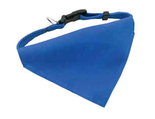 Collar bandana para mascota en resistente y suave poliéster de vivos colores. Con cinta ajustable de cierre de clic y accesorio metálico para cinta de paseo.