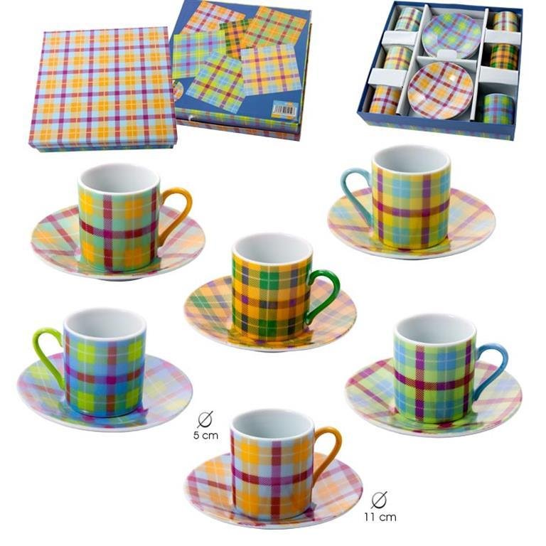 CUADRO ESCOCES SET 6 TAZAS PEQUEÑAS COD: 0005459
