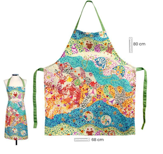 Delantal alta calidad 100% poliéster decorado elementos. Funcional y duradero. lavar a mano o a máquina Max. 30 grados. no usar lejía. no usar secadora.