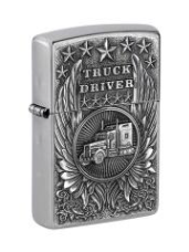 Encendedor Zippo con ilustración de camión, estrellas y allas ,con el texto “Truck Driver”.
