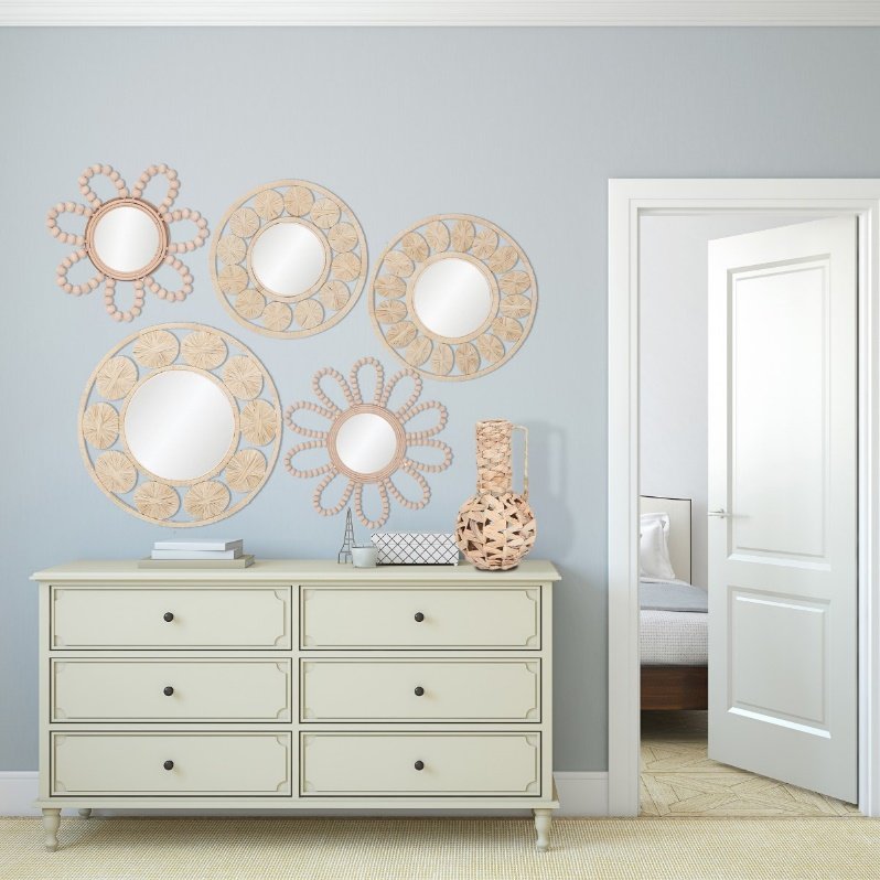 ESPEJO DE PARED CIRCULAR GRANDE ESTILO FLORES. COD: 36438