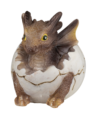 Figura de resina en forma de dragón en un huevo.