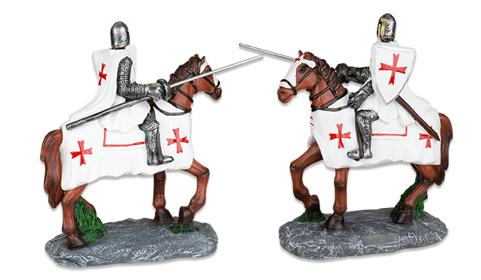 FIGURA RESINA CABALLERO TEMPLARIO A CABALLO MARRON 12 cm. COD: 39547