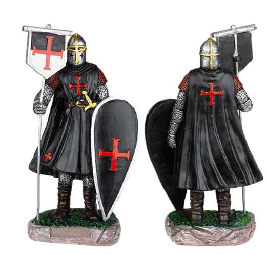 Figura resina caballero templario bandera-escudo negro.
