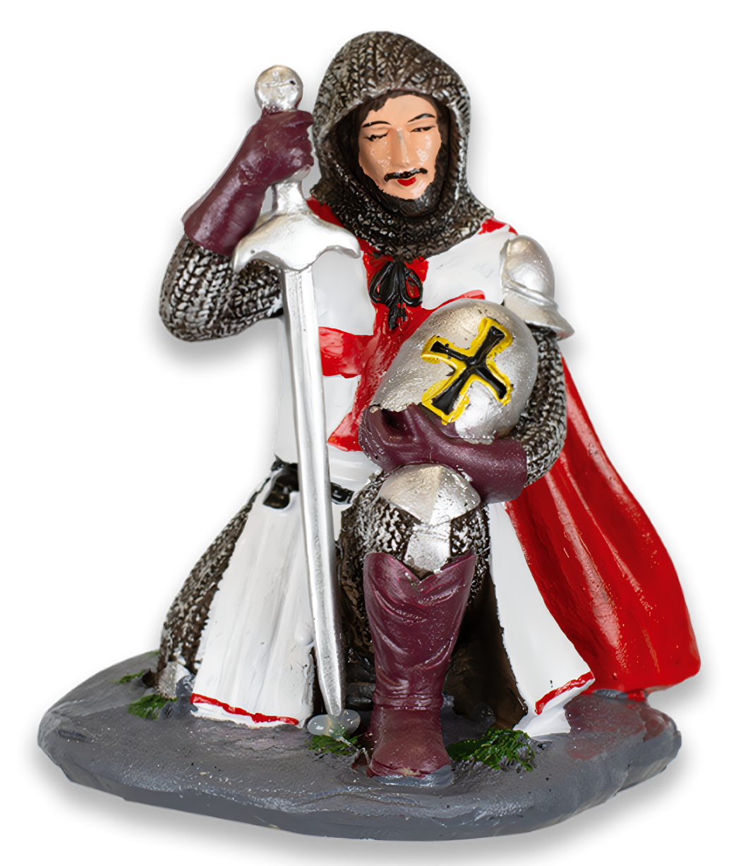 FIGURA RESINA CABALLERO TEMPLARIO CAPA ROJA. COD: 39241