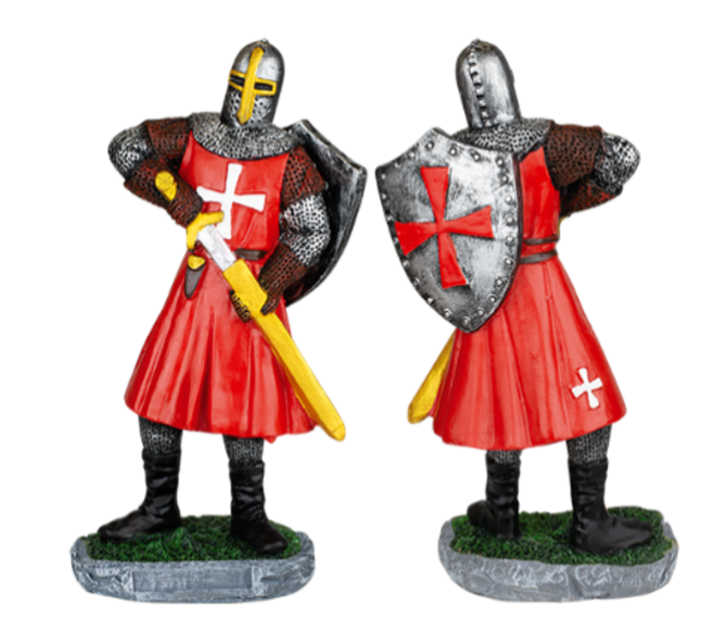 Figura de resina en forma de caballero templario desenfundando una espada.