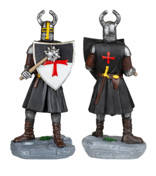 Figura resina caballero templario maza- escudo negro.