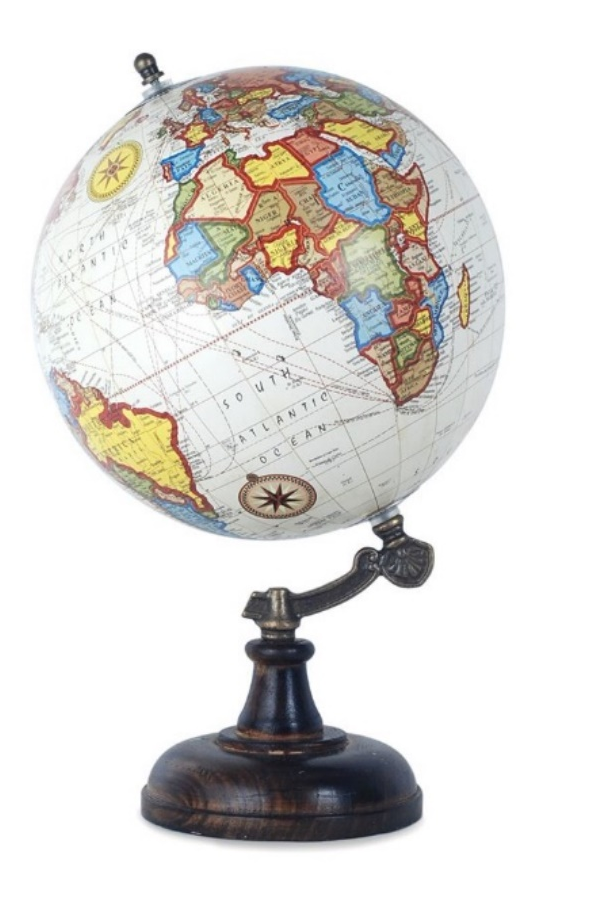 Globo Terráqueo en PVC y Madera. Multicolor. 20 cm.