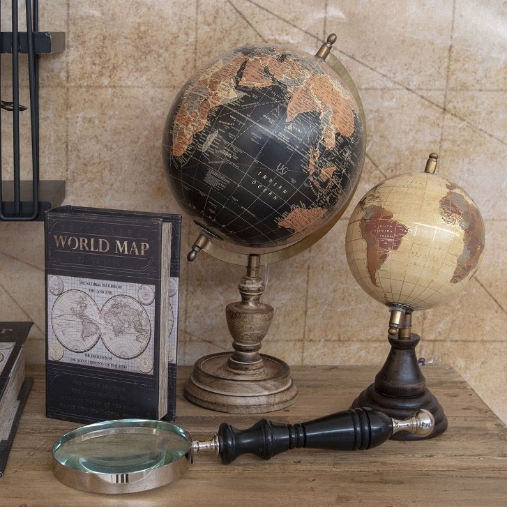 Globo Terráqueo en PVC y Madera. Multicolor. 20 cm.