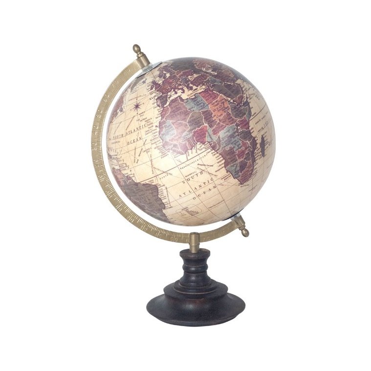 Globo Terráqueo en PVC y Madera. Multicolor. 20 cm.