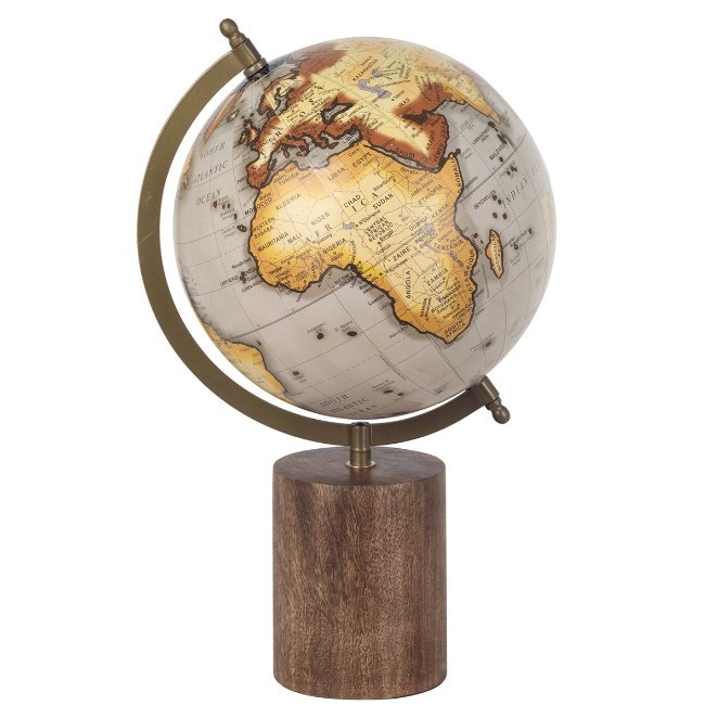 Globo Terráqueo en PVC y Madera. Marrones. 20 cm.