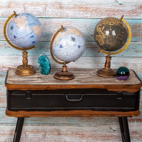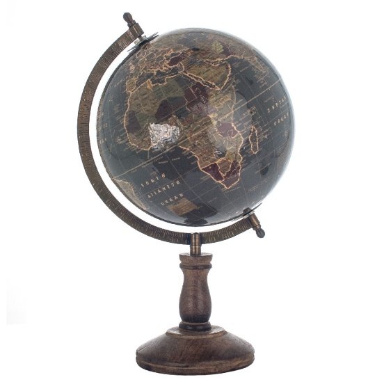 Globo Terráqueo en PVC y Metal. Negro-Marrones. 20 cm.