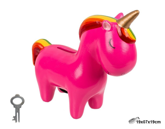Hucha unicornio con llave.