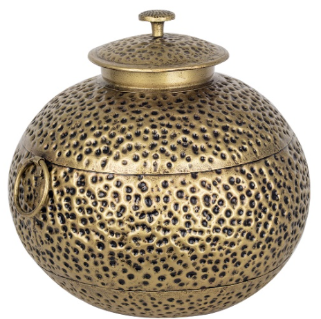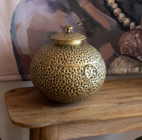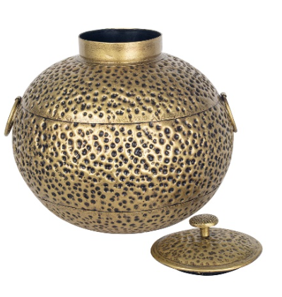Jarrón de Hojalata, con forma de bola con tapa. Grande. MOD: Antiguo V.