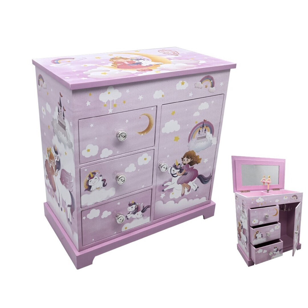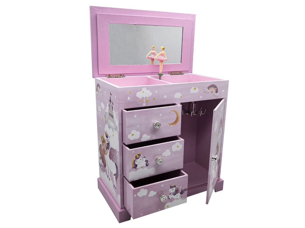Joyero armario con 2 cajones y puerta con cuelga collares/pulseras.