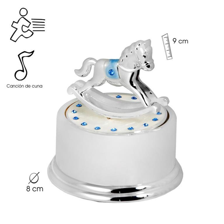 RELOJ MUSICAL PLATEADO CABALLO AZUL. COD: 0017131