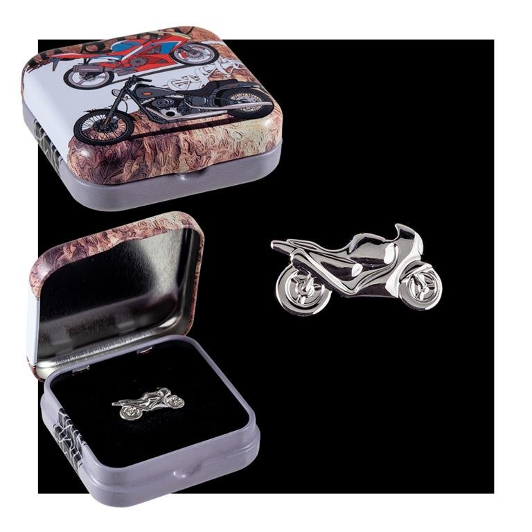 Pin de moto carreras plateada.