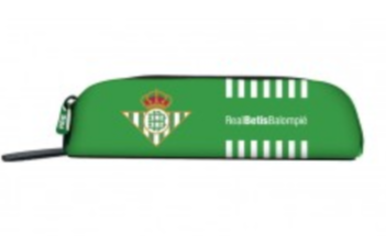 Neceser del equipo del Real Betis. Se cierra con una cremallera. Tiene un asa de mano. Tiene un motivo estampado sobre la superficie. Tiene un pequeño detalle bordado sobre la superficie.