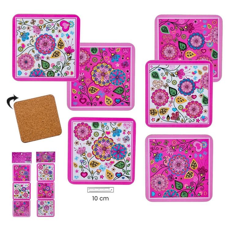 Posavasos decorado diseño de flores rosas.