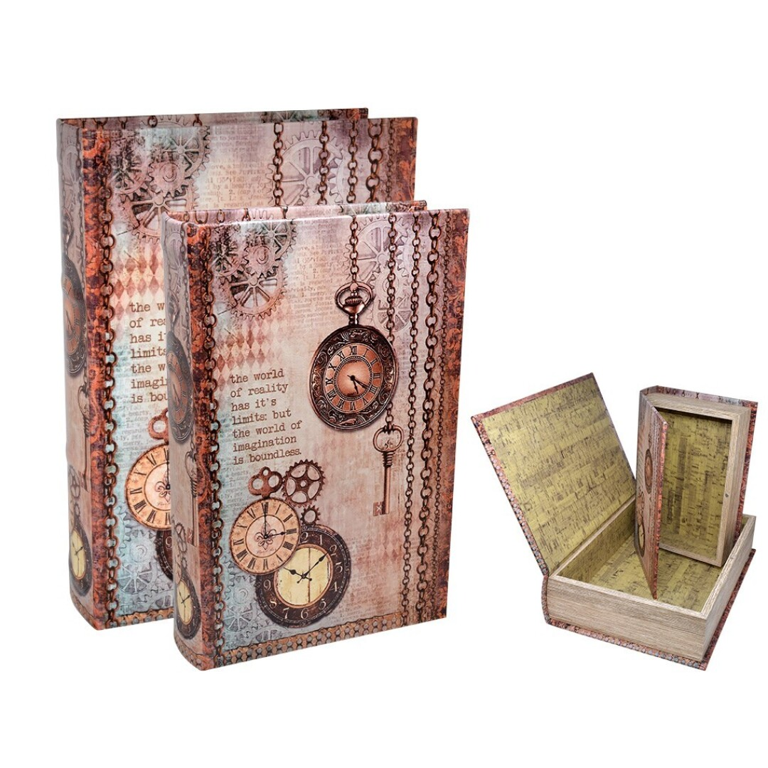 Set de 2 cajas forma de libro hechas en MDF y forradas en polipiel