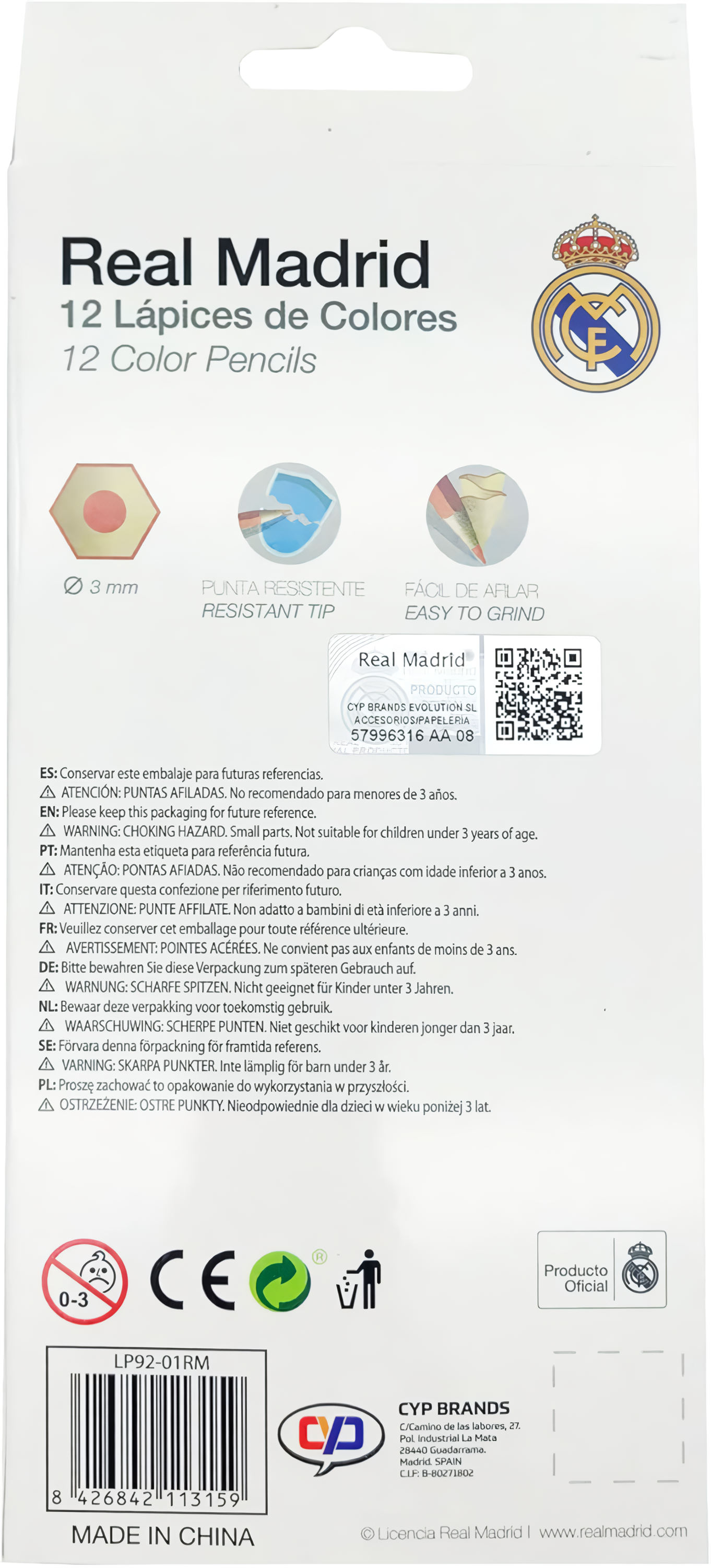 Producto Oficial del Real Madrid: Set Lápices 12 colores
