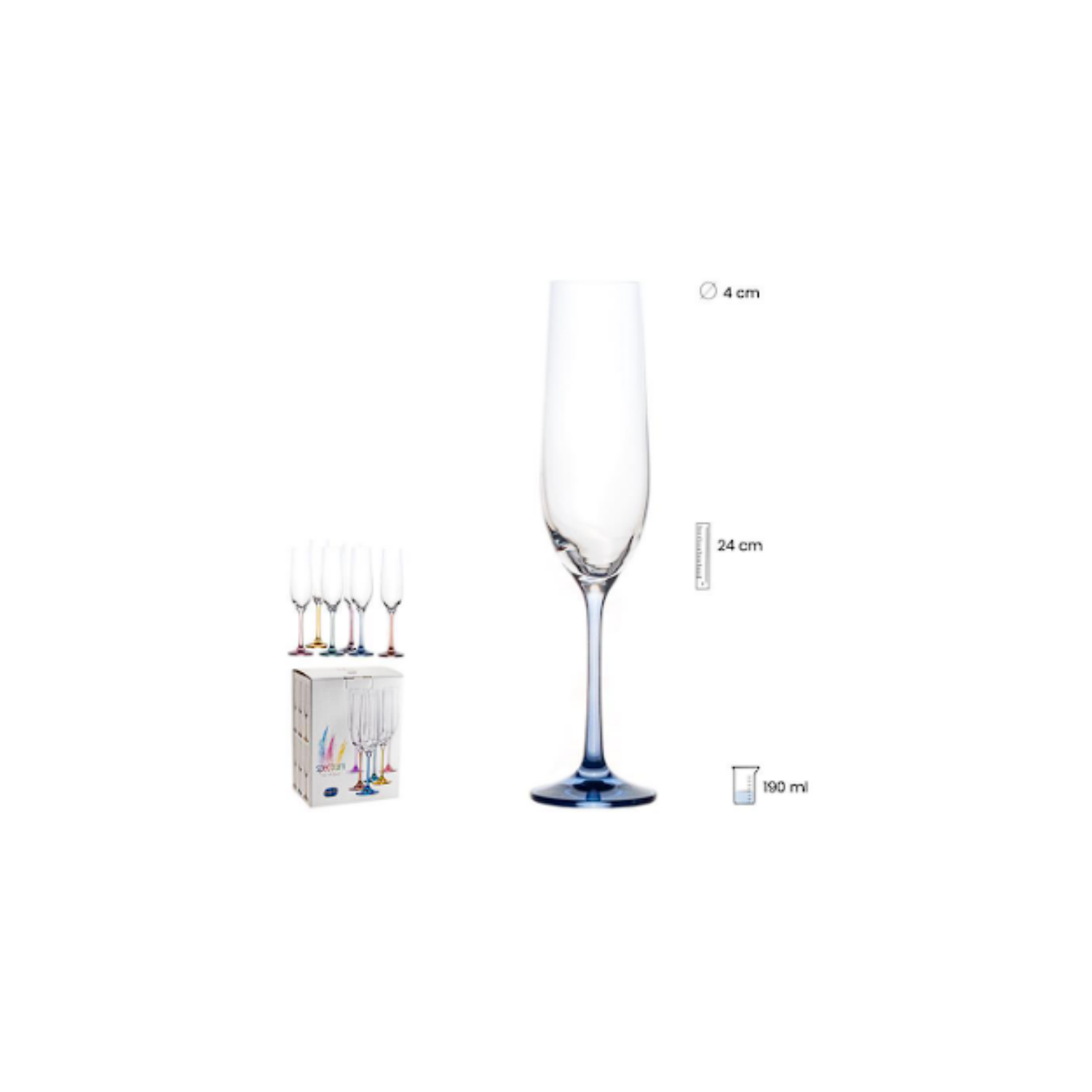 SET 6 COPAS CAVA 190 ML PIE COLOR SURTIDO COD: 0012345