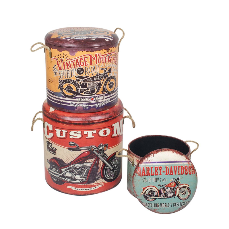 SET DE 2 TABURETES DE ALMACENAJE DISEÑO DE CARTELES. COD: 27565