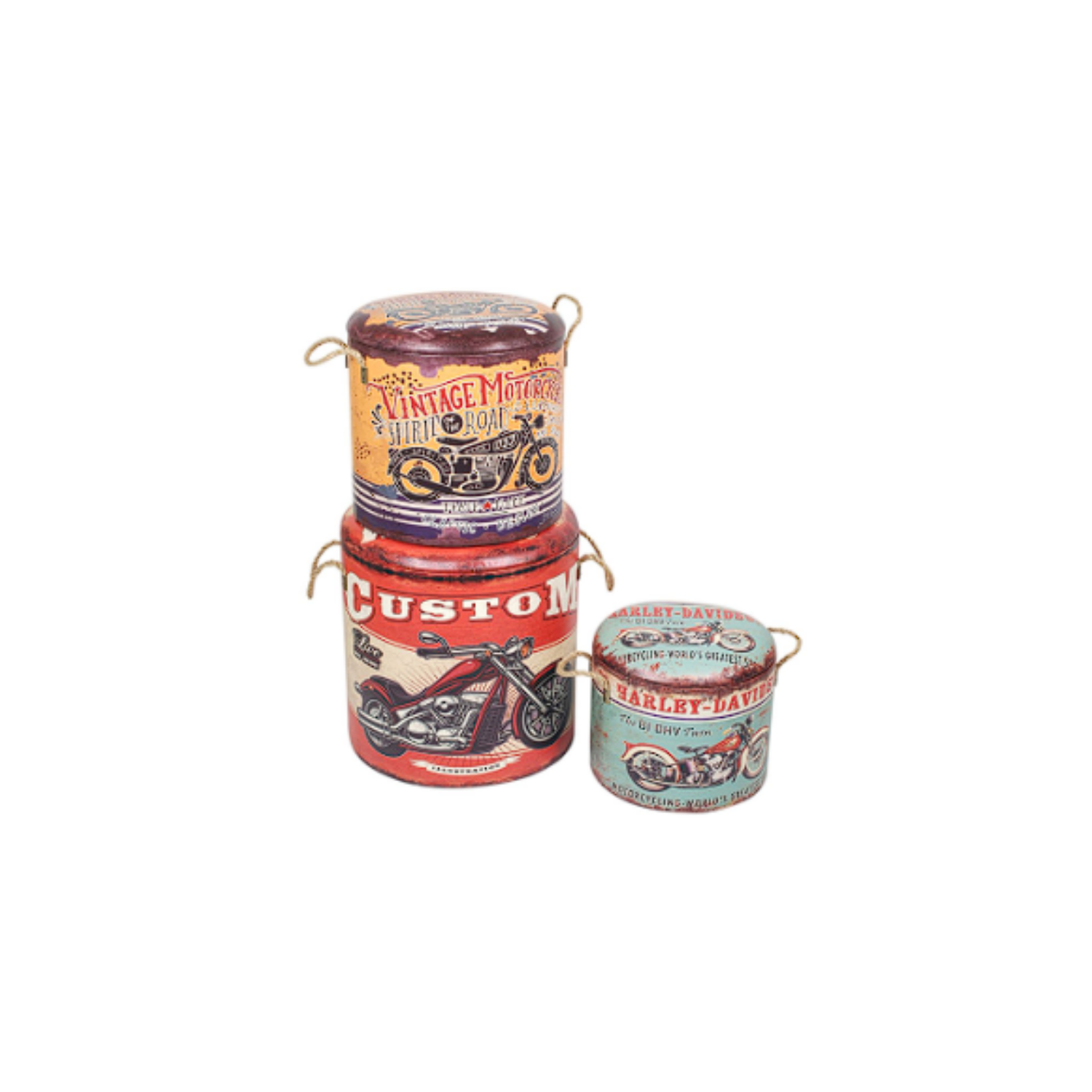 Set de 2 taburetes para almacenaje con diseño de cartel.