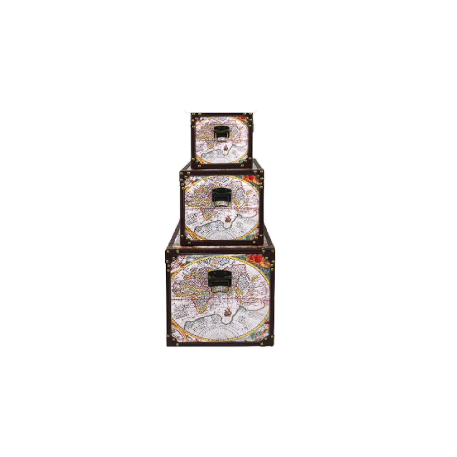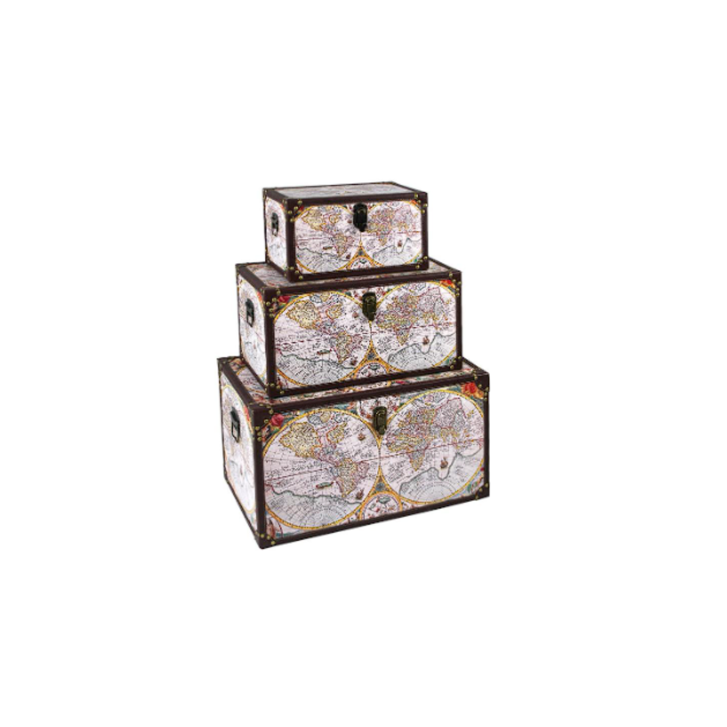 SET DE 3 BAULES DE ALMACENAJE DISEÑO DE MUNDO. COD: 29390