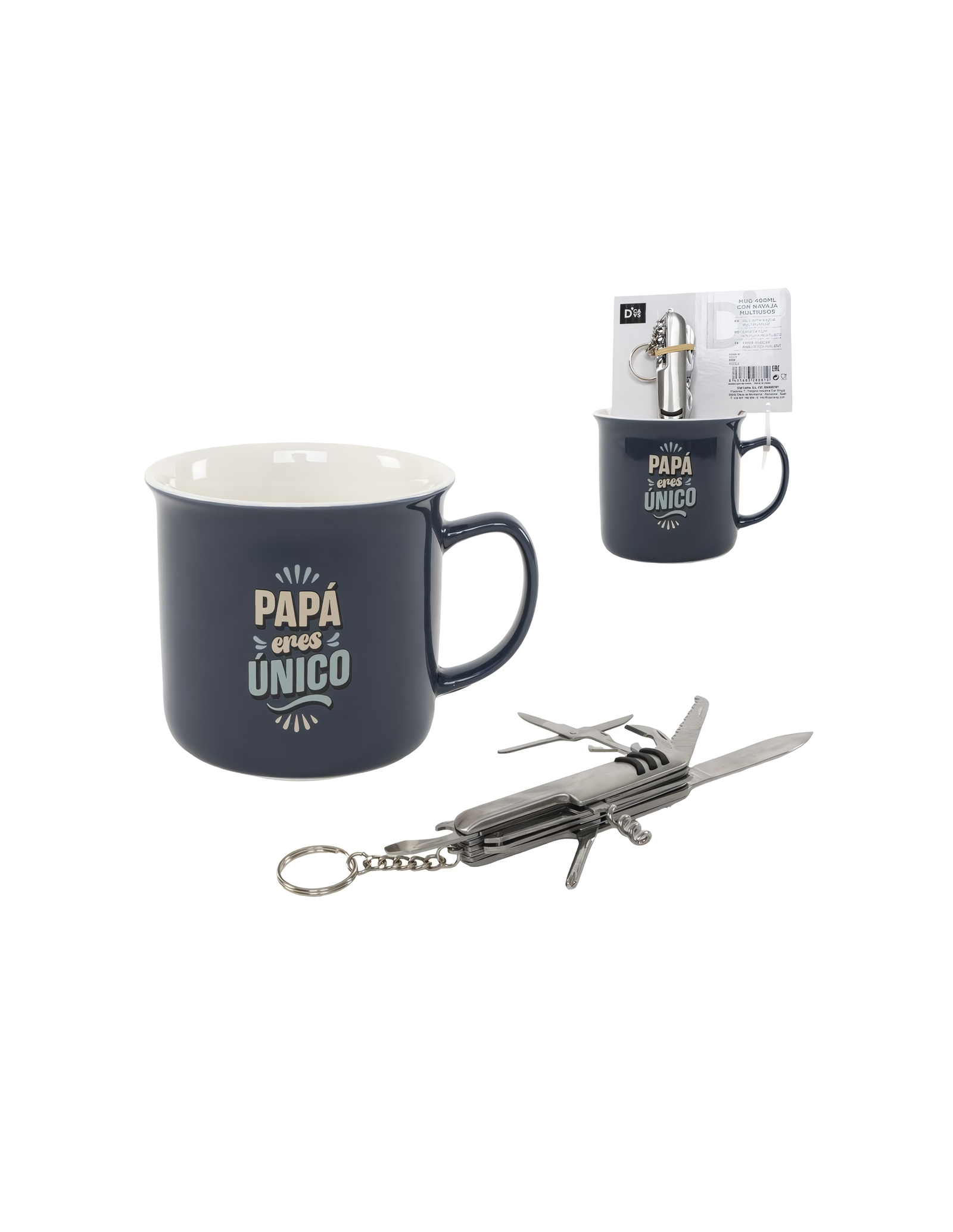 Set taza 400 ml + navaja multiusos papa eres único.