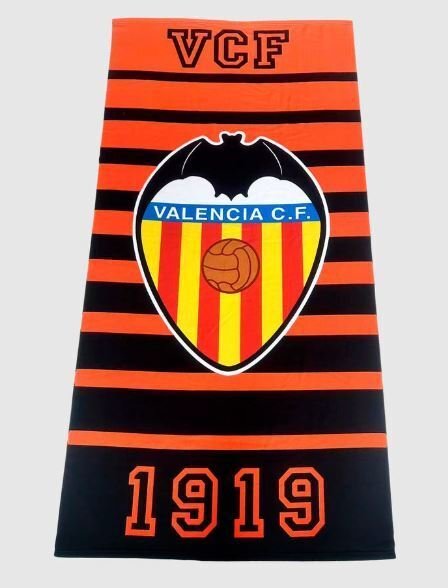 Toalla de playa modelo futbol Valencia CF Señera. En algodón 420 grs. Multicolor. Tamaño 75×150.
