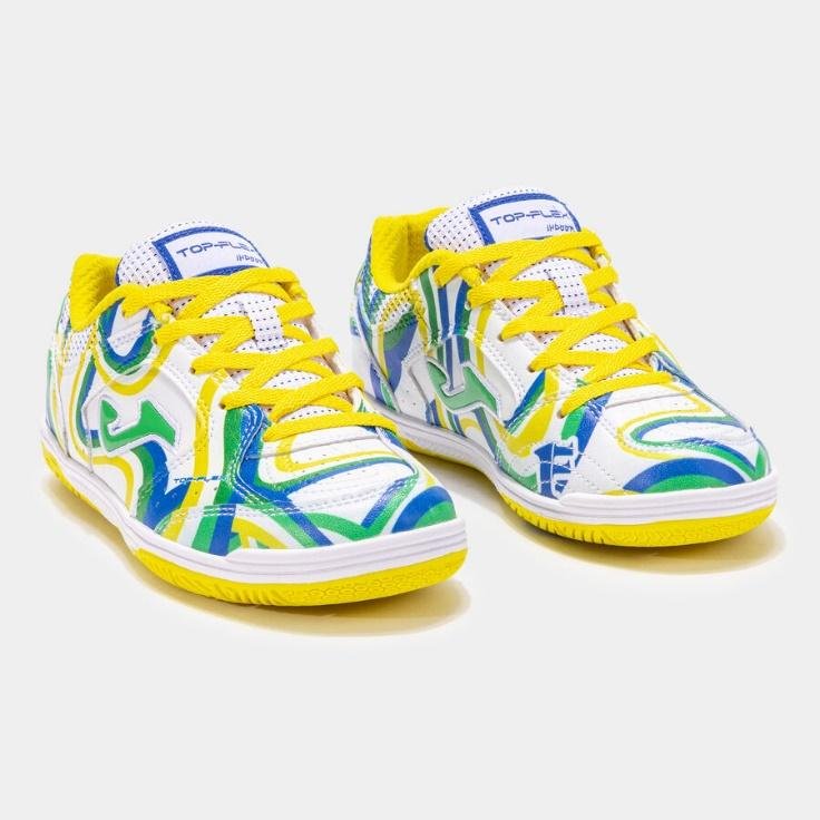 ZAPATILLA FUTBOL SALA JOMA TOP FLEX JR 24 FERRAO INDOOR BLANCO AMARILLO