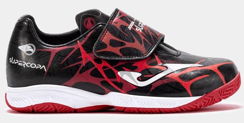 Zapatilla de fútbol sala Joma Top Flex Indoor Junior de color negro y rojo.