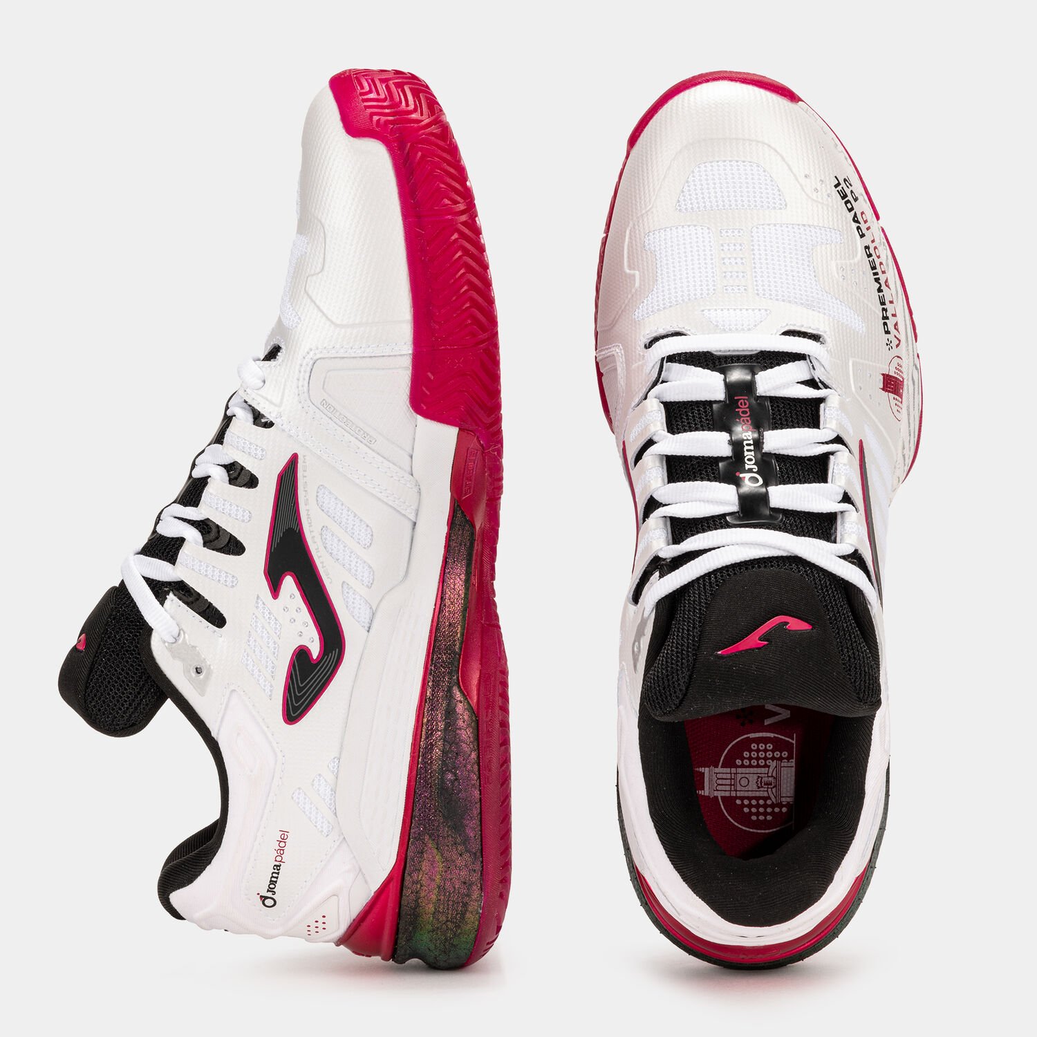 Zapatilla de padel Joma Slam 25 Premier padel Valladolid P2 unisex de colores blanco y negro.